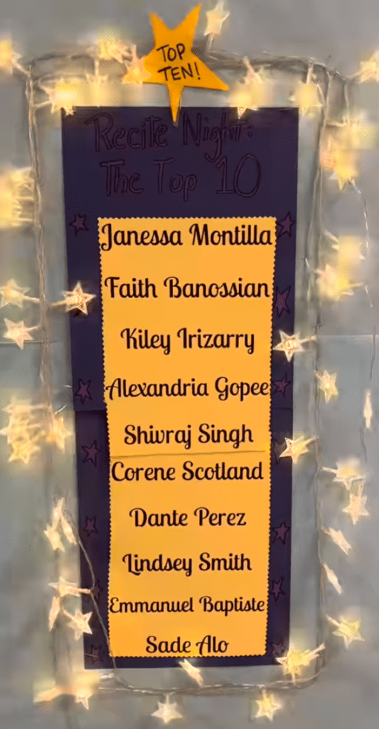 Congratulations to our 2022-23 top 10 Recite Night finalists:
