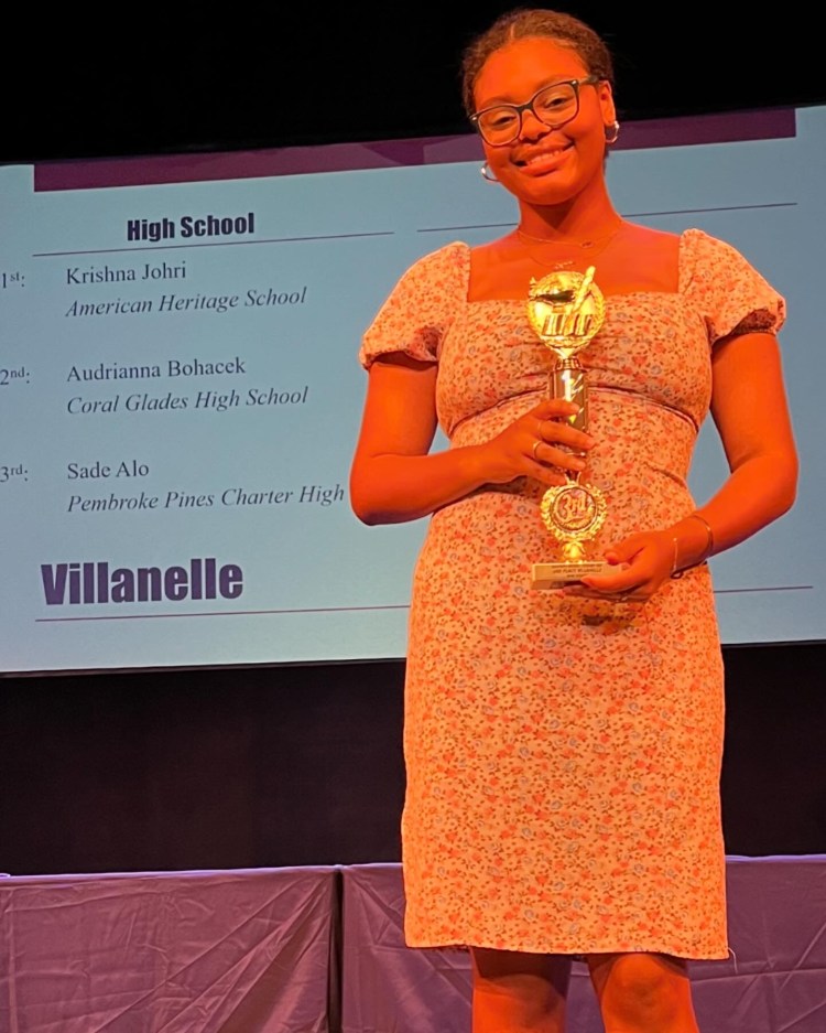 Senior Sade Alo won 3rd place in the villanelle category.