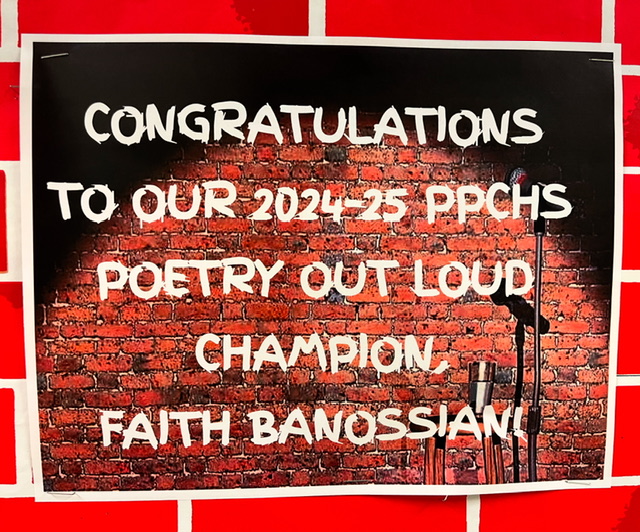Ava Johnson, our school’s 2018-19 Poetry Out Loud finalist, took judges by storm again at this year’s qualifying Recite Night round and our Poetry Slam POL finals, ranking first place at both events to qualify as our school’s 2019-20 finalist. As our PPCHS participant at the Poetry Out Loud state competition, Ava recited “The Mortician in San Francisco” by Randall Mann, “Thoughtless Cruelty” by Charles Lamb, and, since she advanced to the third and final round, “Dream Song 14” by John Berryman. Her stellar performances earned her the second place title at the state level, an honor which also came with a $300 award as well as $200 from the Poetry Foundation to add to our school library’s poetry collection! We are so very proud of Ava for representing Pembroke Pines Charter High School with such excellence!
